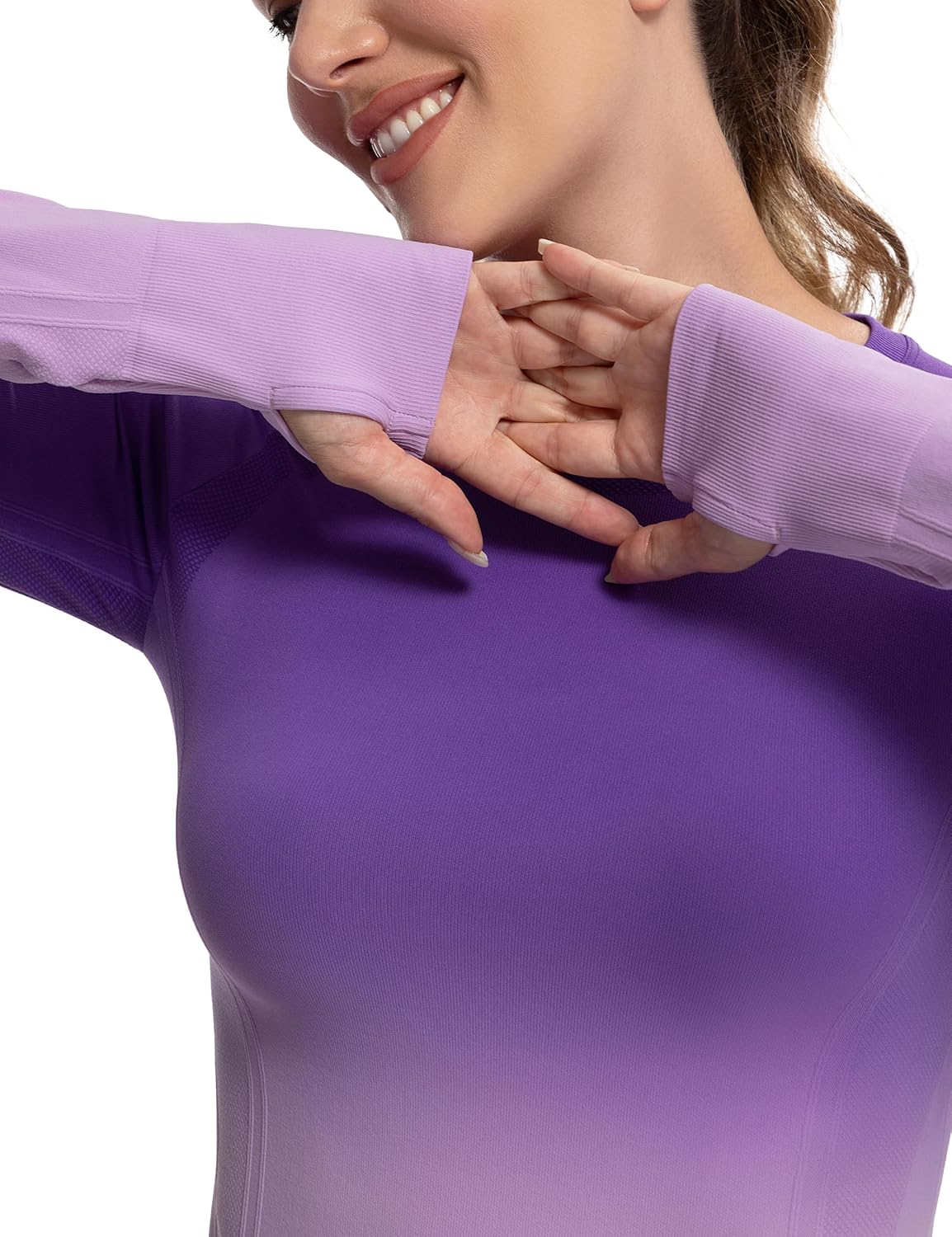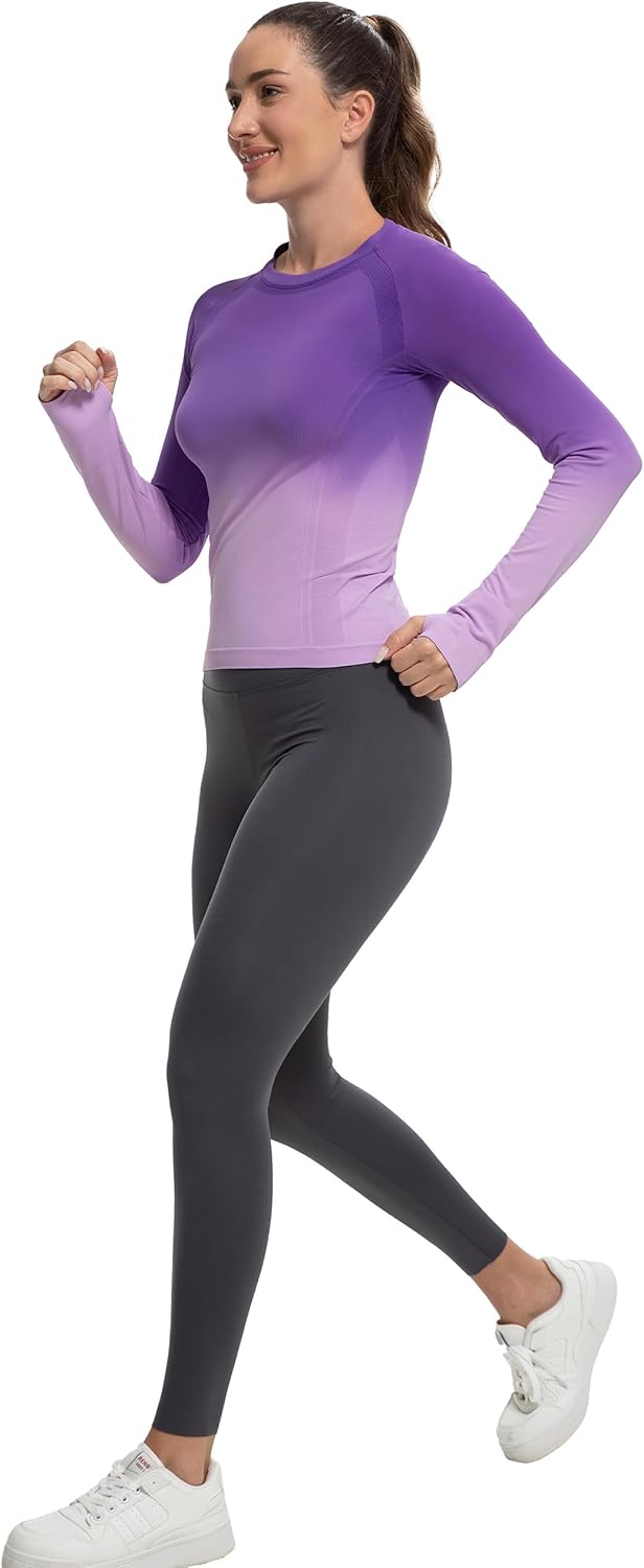 - Long Sleeve Workout Tops for Women: Ultra Soft & Breathable, moisture-wick, lightweight, quick dry. Quality gradient add a sense of fashion, make you eye-catching in the crowd.